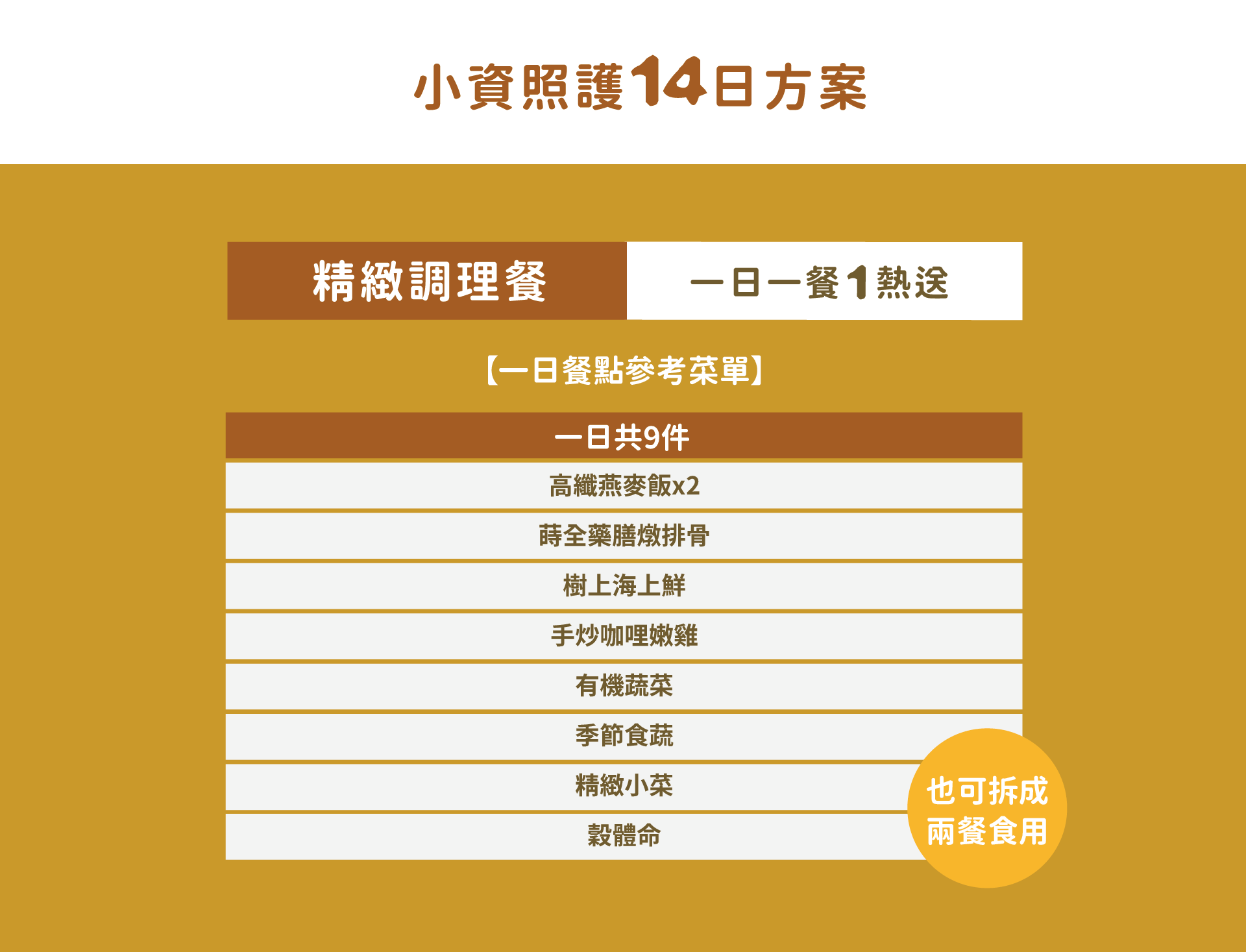 每日9件組,中午1熱送。